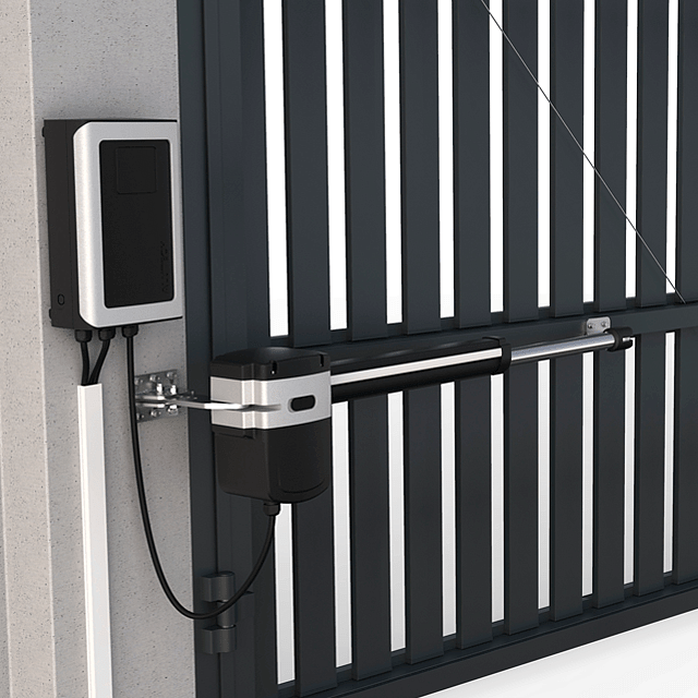 2 телескопических привода со встроенными концевыми выключателями и LED подсветкой. Расширенный функционал управления с блоком CU-AM (IP65).